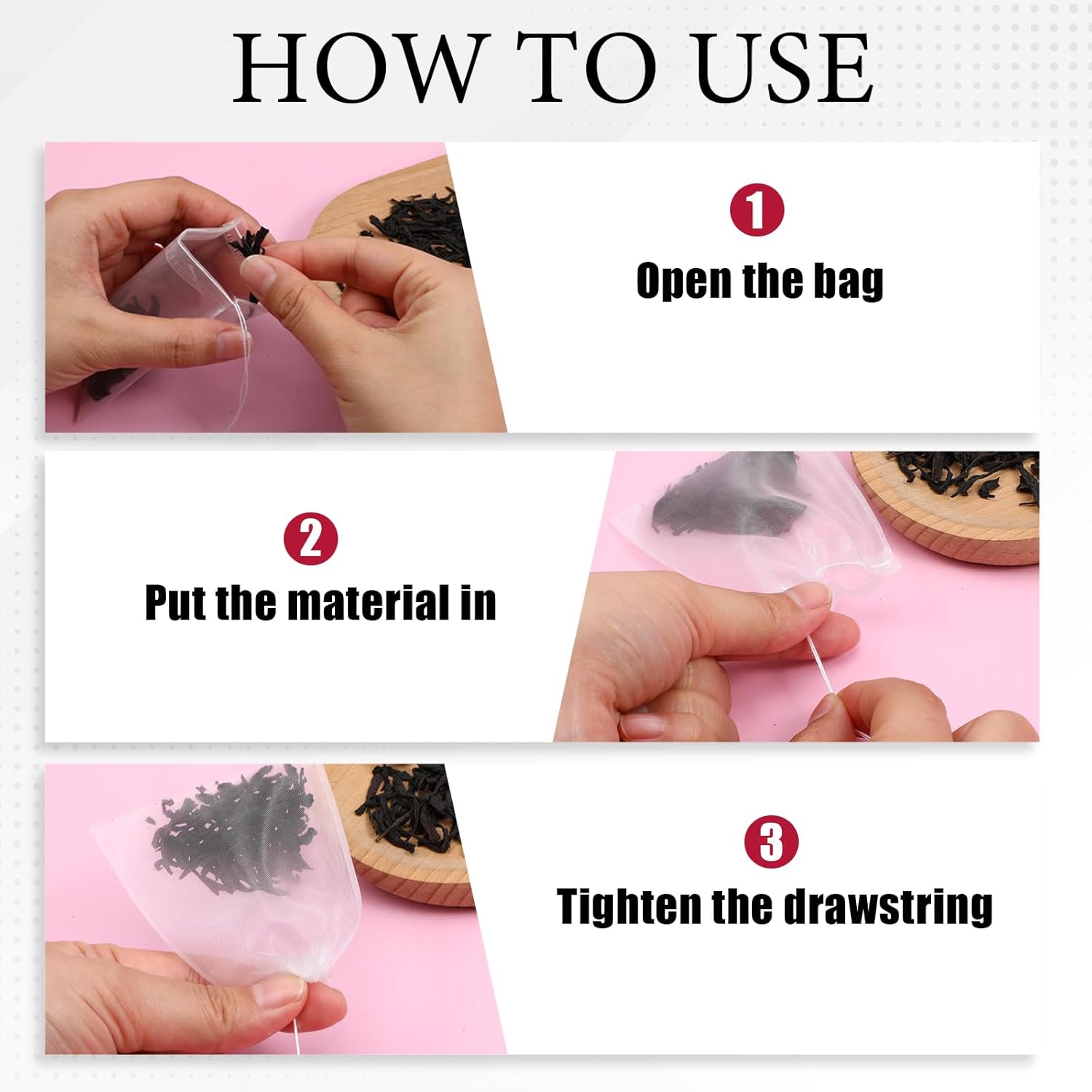 - Convenient: Each of our loose leaf tea bags is tightly sealed, making them strong enough to steep multiple times without tearing. The drawstring design ensures easy packing and closing, keeping your tea leaves contained and your tea clean
