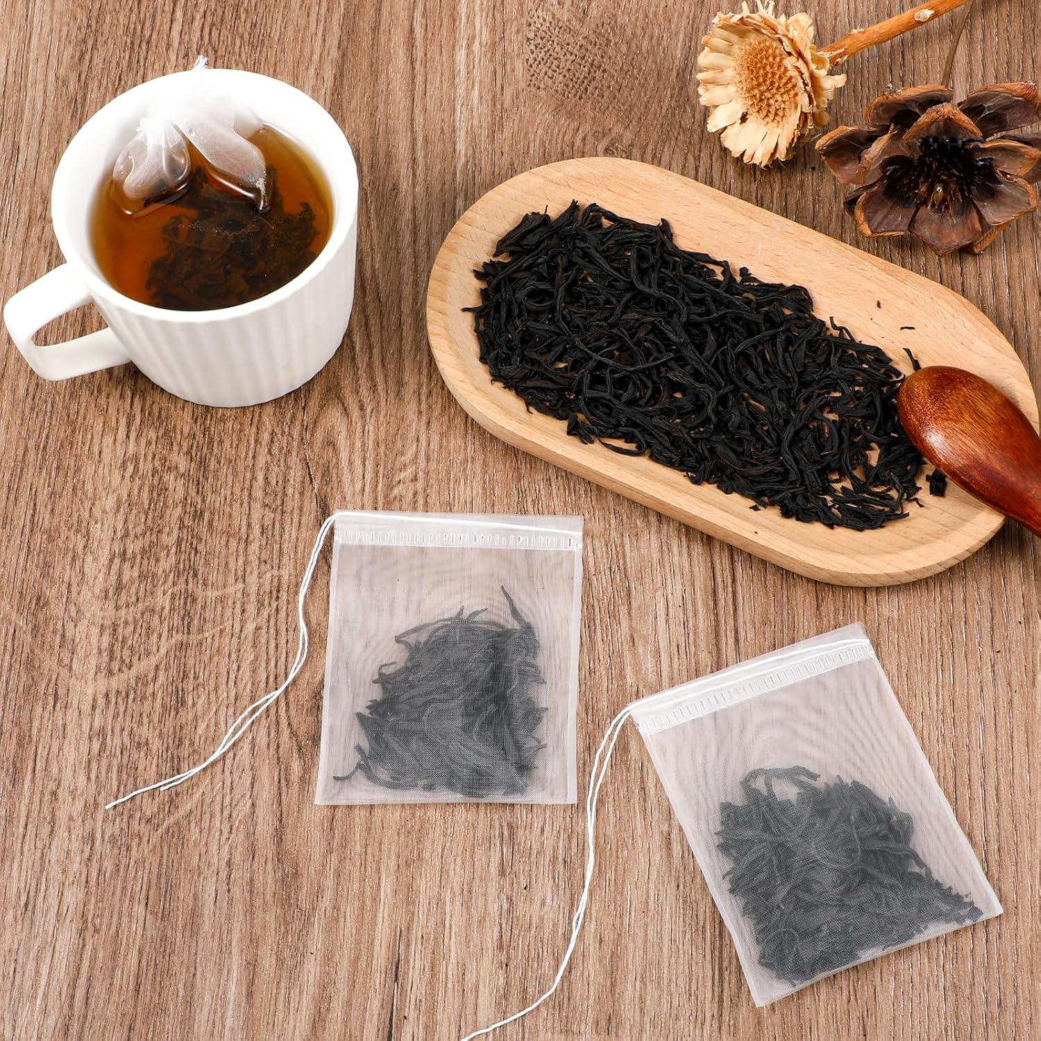 - Nylon Material: Our tea bags for loose leaf tea are made from nylon material, ensuring excellent permeability and heat resistance. This allows for a richer brew and a longer-lasting tea experience. Enjoy your tea