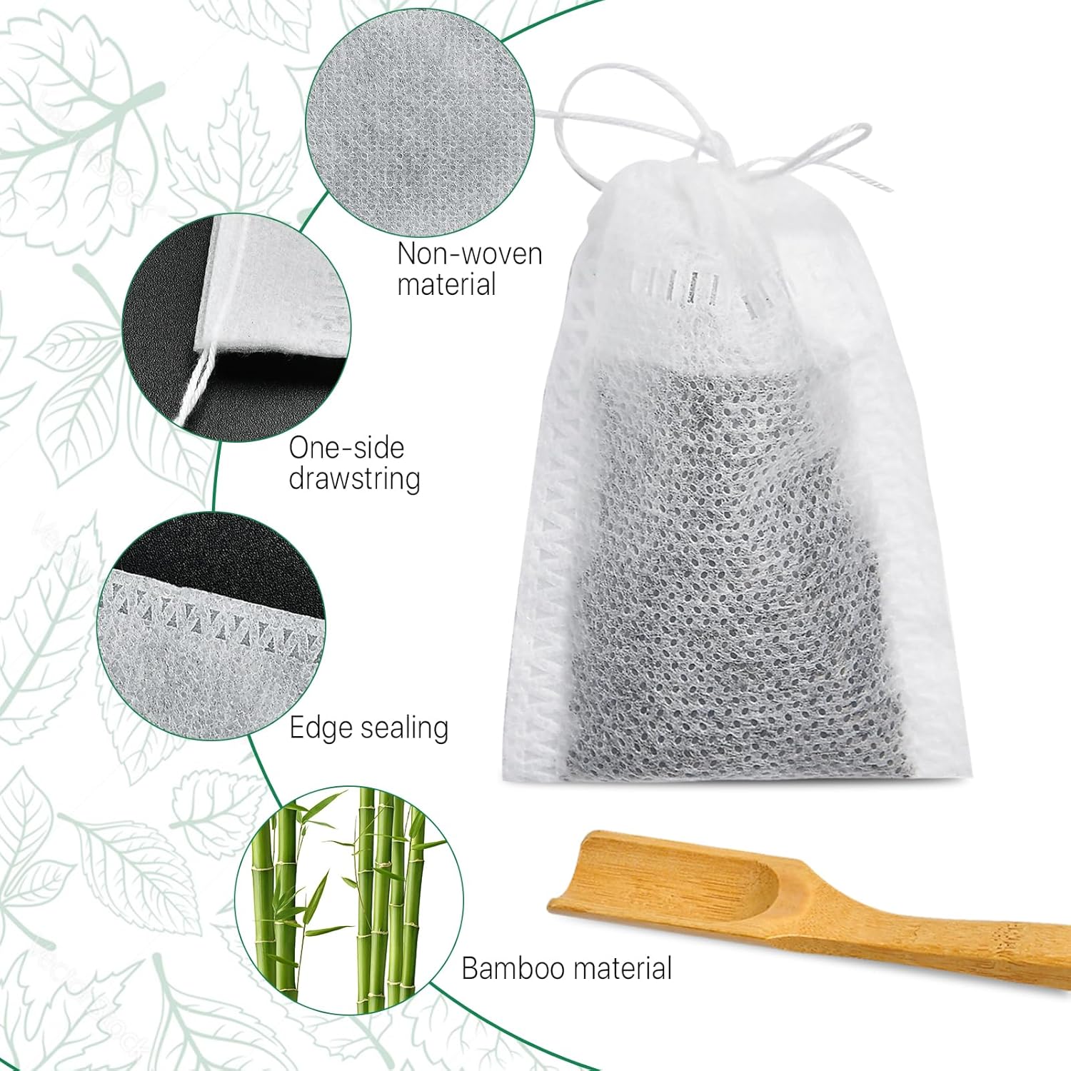 1000Pcs Disposable Tea Bags for Loose Leaf Tea, Drawstring Empty Tea Bags Bulk, Tea Filter Bags with Tea Spoons for Loose Leaf Tea, Coffee, Spice, Sachet, Bath, Cooking (2.75 X 1.96 Inch)