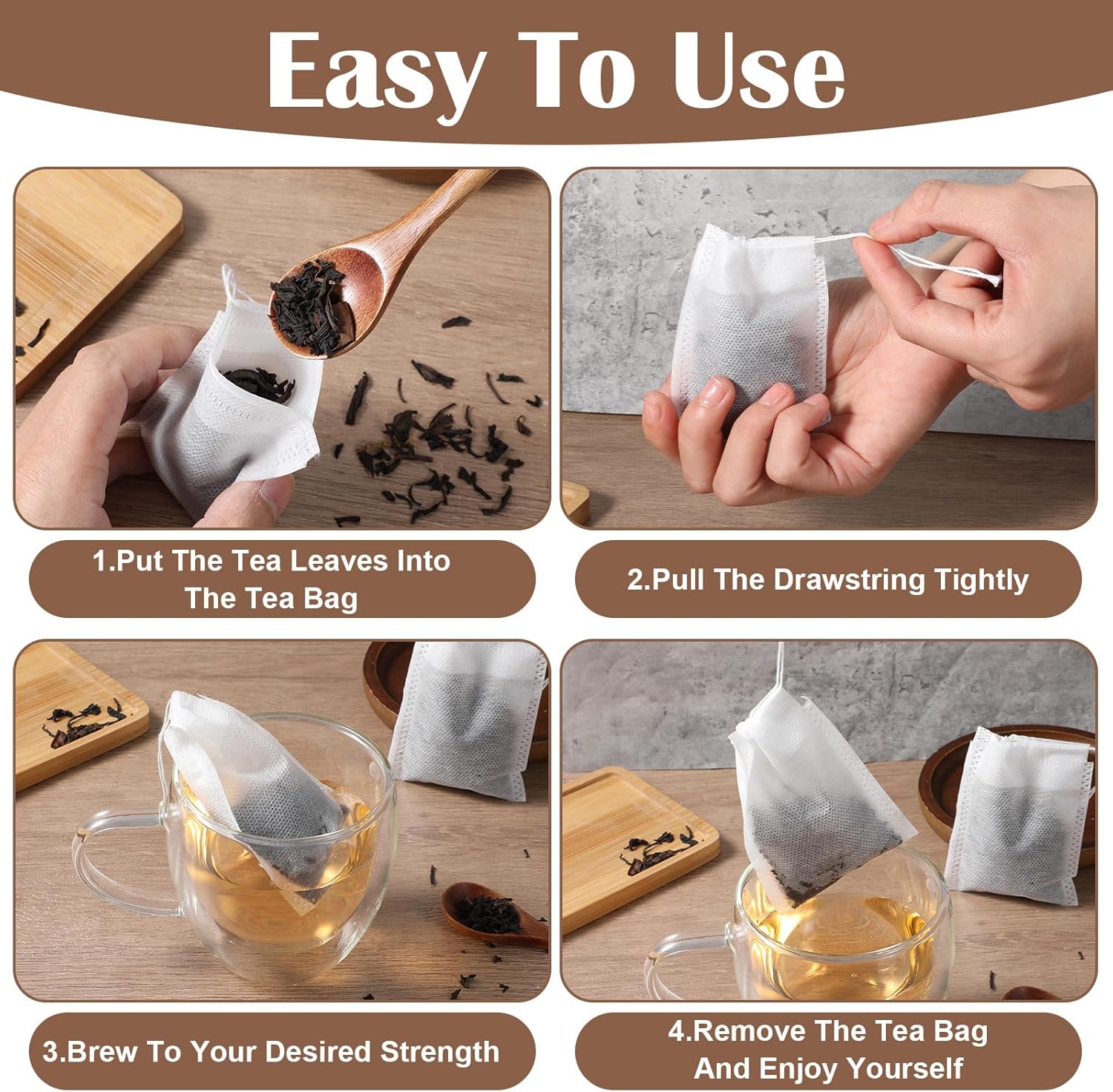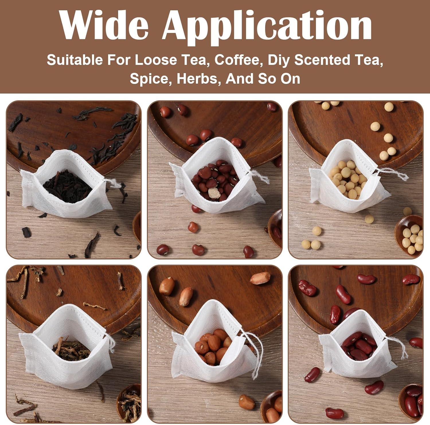 - Versatile Use: These loose leaf tea bags are not just for tea lovers; sachet bags are a versatile accessory for anyone who enjoys infusing flavors. Perfect for loose leaf tea, coffee, spices, herbal medicine, and even DIY scented tea projects, tea filter bags are an essential addition to any kitchen. Whether you're crafting a soothing herbal blend or experimenting with new flavors, these unbleached tea bags provide the flexibility and convenience you need to explore your culinary creativity.