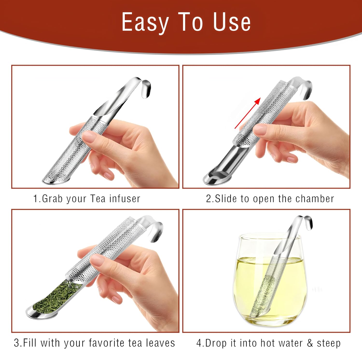 - 【Tea Infuser for Loose Leaf Tea】Pull lids for quick tea loading. Fill loose leaves/spices, immerse in cups/teapots, then remove. Residue rinses out instantly under water. Designed for individual use, this stainless steel tea infuser lets you steep to your preferred strength, brew single cups with perfect flavor control. Perfect for rooibos, jasmine, hibiscus, pu-erh, oolong, green tea, chai, lavender, herbs, and even the finest small-leaf blends