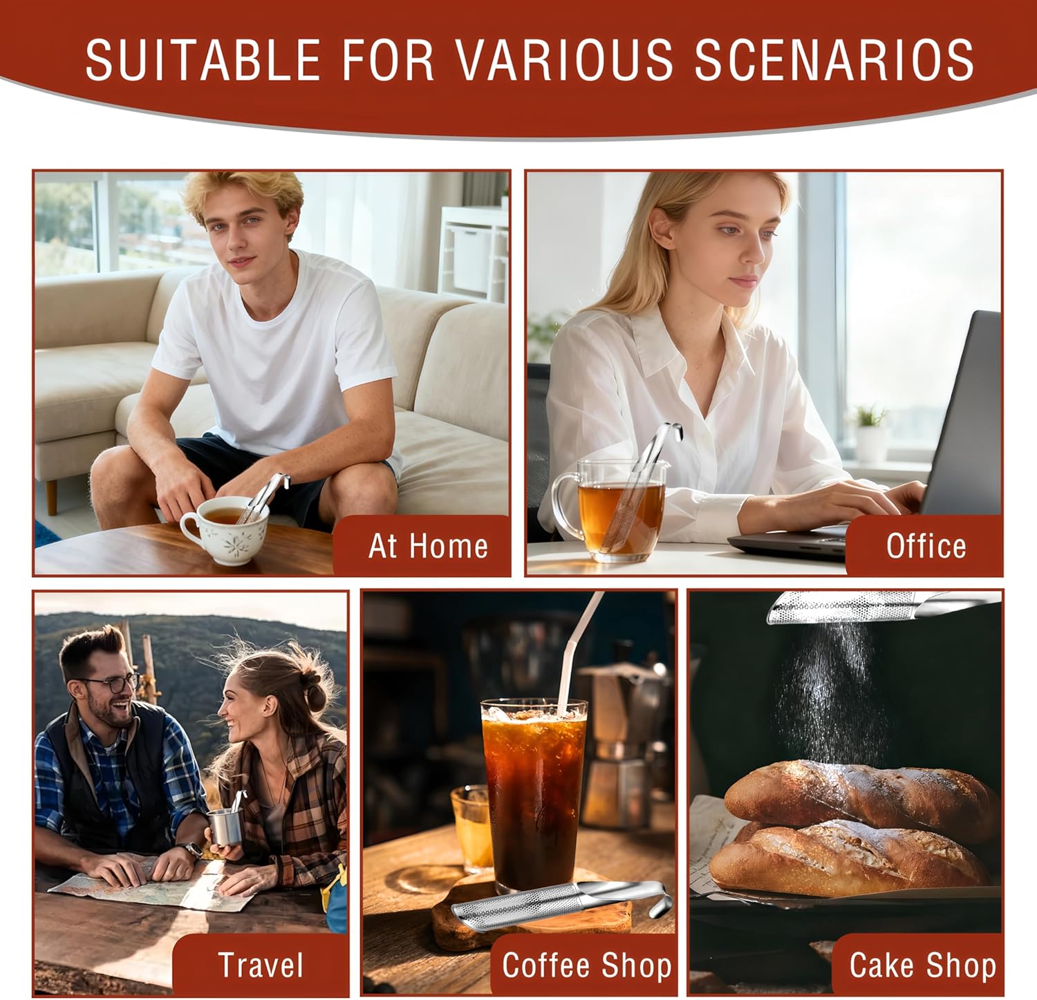 - 【Travel Tea Infuser】The tea infuser with handle is a perfect gift idea, combining practicality, style, and essential accessories. A practical thoughtful gift set for tea lovers and baking enthusiasts. Ideal for birthdays, Christmas, New Year or other festivals. This powdered sugar shaker duster sifter stores flat in any drawer, taking minimal space. Carry effortlessly for travel/office