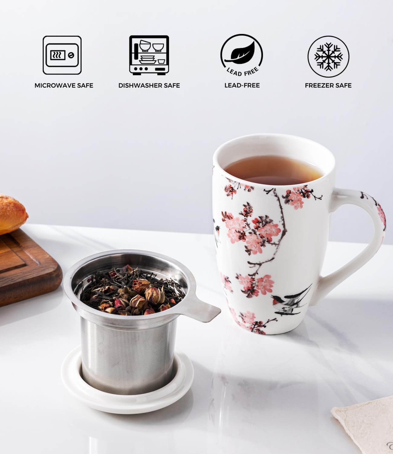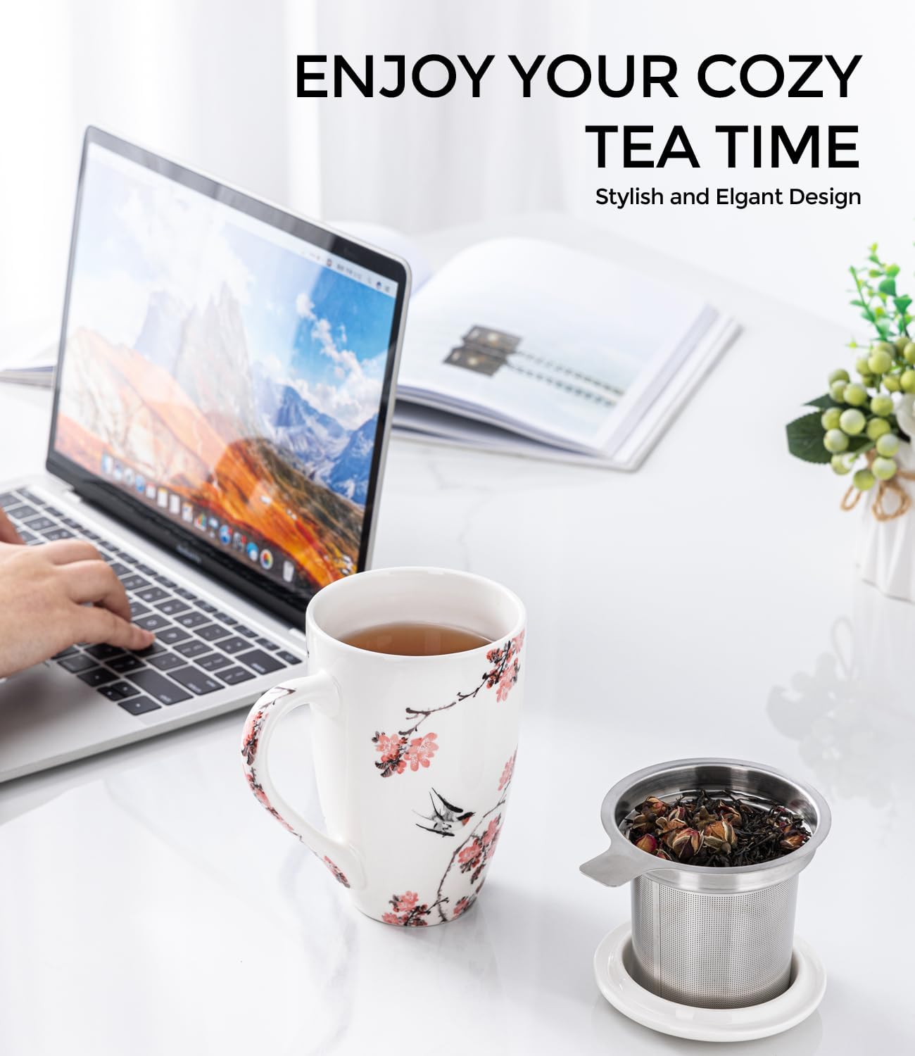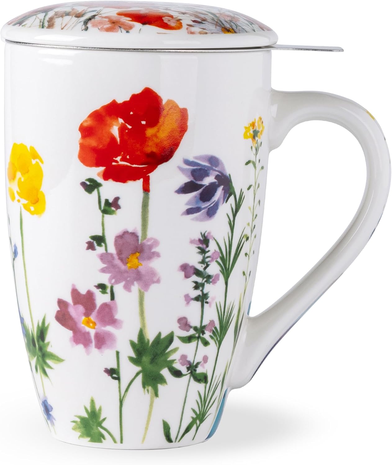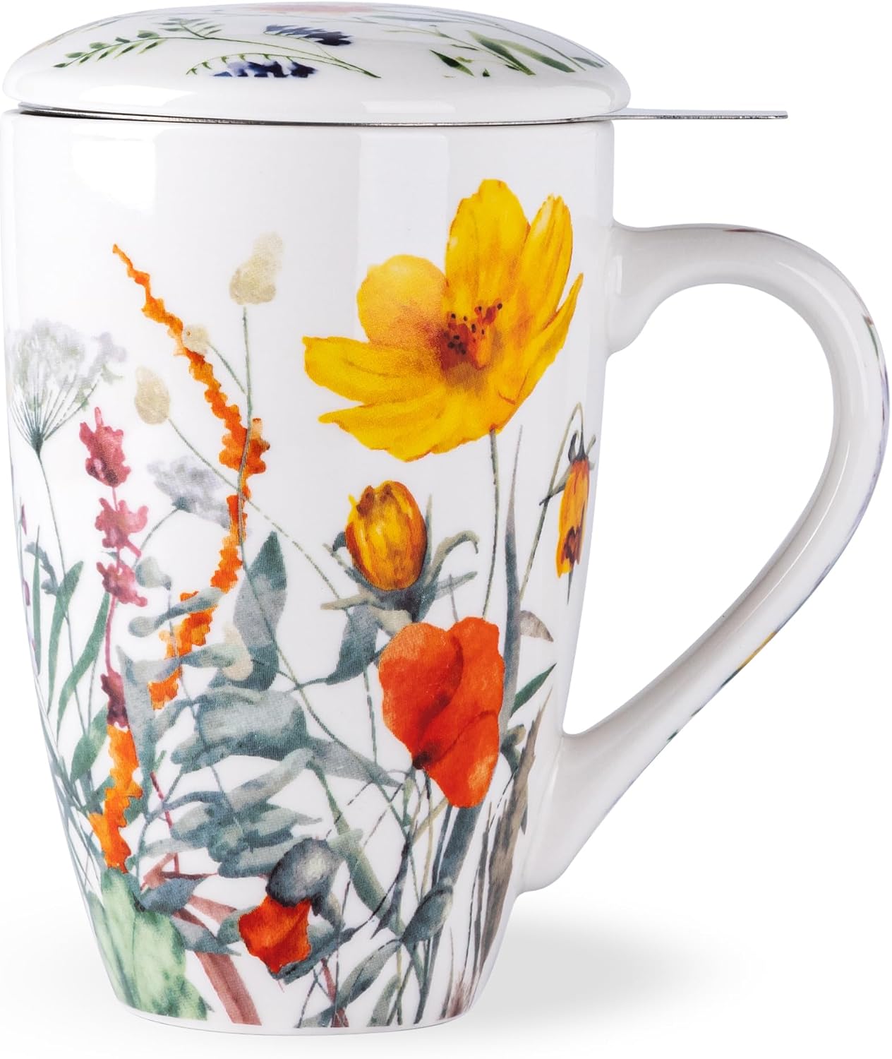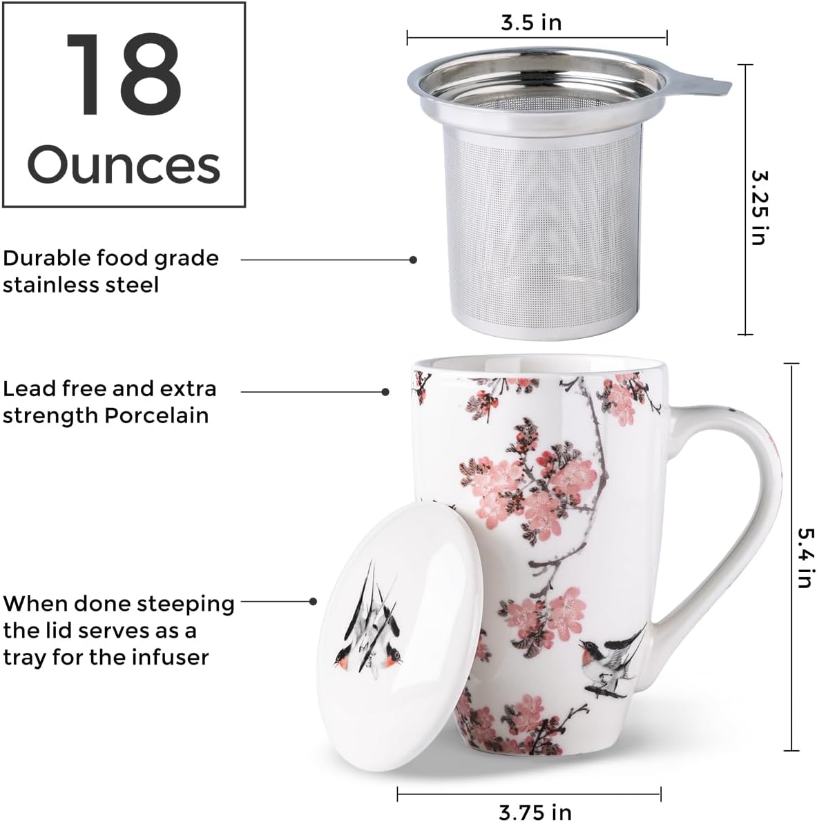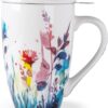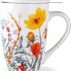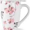 AmorArc Porcelain Tea Mug with Infuser and Lid, 18 Oz Tea Cup with Handle for Loose Leaf Tea, Gift for Tea Lovers of Men and Women