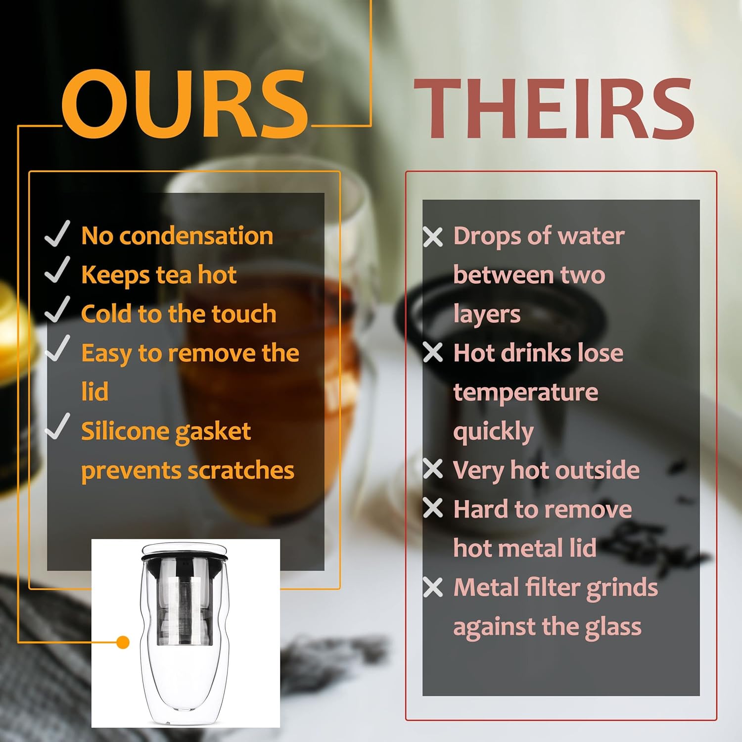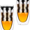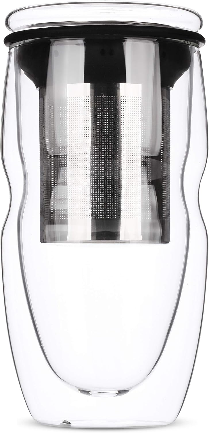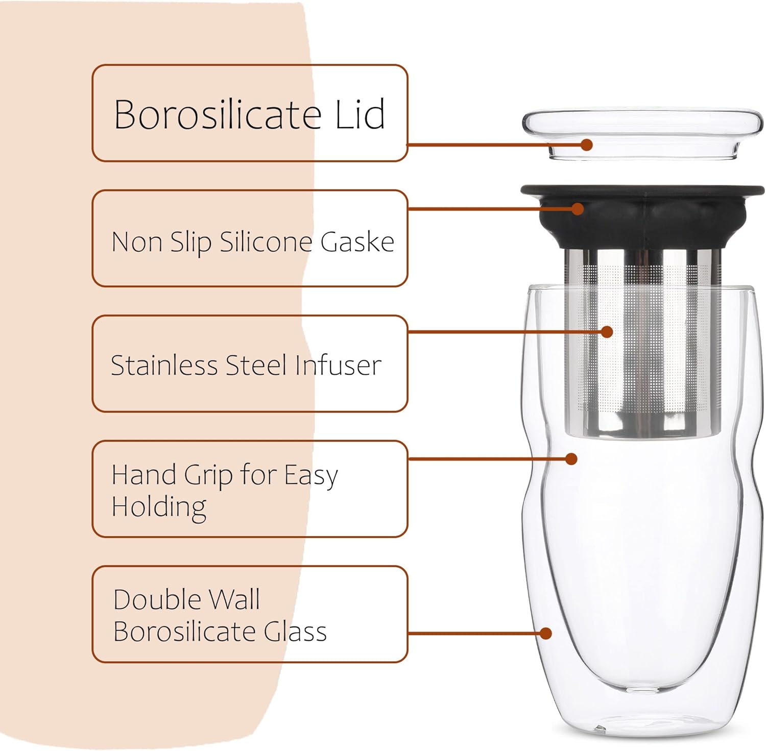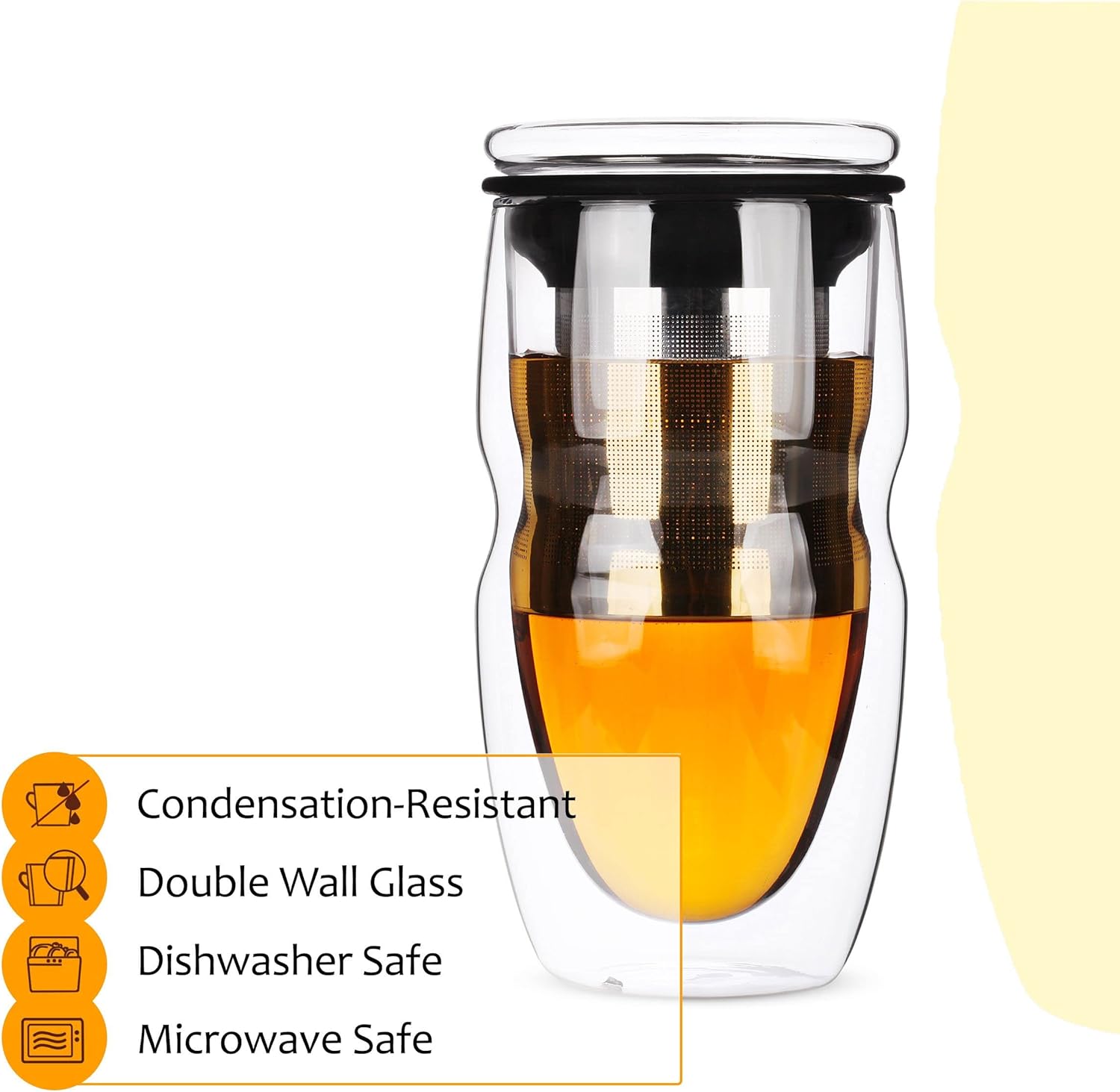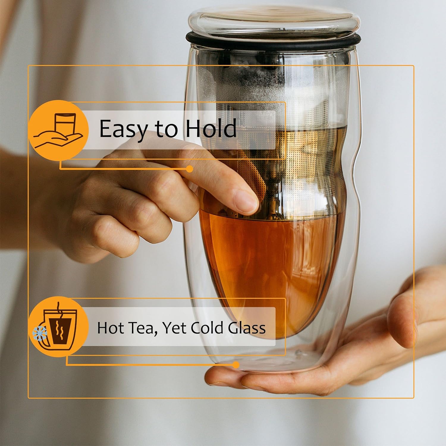 BTAT- Double Wall Glass Tea Cup With Stainless Steel Infuser & Lid, 16oz, 500ml, Tea Cup with Lid, Christmas Gifts