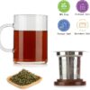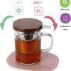 Glass Tea Cup COMI Glass Mug with Walnut Lid 14oz Business Teacups with Infuser