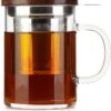 Glass Tea Cup COMI Glass Mug with Walnut Lid 14oz Business Teacups with Infuser
