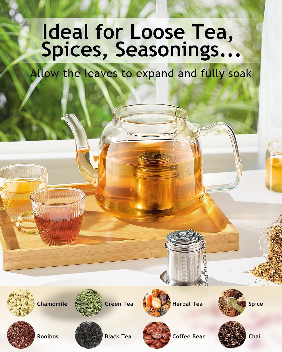 House Again 2 Pack Tea Infuser, Extra Fine Mesh Tea Infusers for Loose Tea, 18/8 Stainless Steel Tea Strainer with Extended Chain Hook, Tea Steeper for Brew Tea, Spices & Seasonings