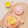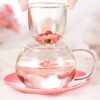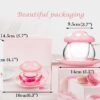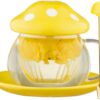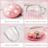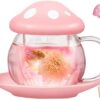 Mushroom Tea Cup Set, Cute Glass Tea Cups and Saucers, Kawaii Tea Cup with Infuser for Loose Leaf Tea Steeper, Coffee Mug Christmas Gifts for Women, Tea Infuser Mug with Lid for Mother Girls (Pink)