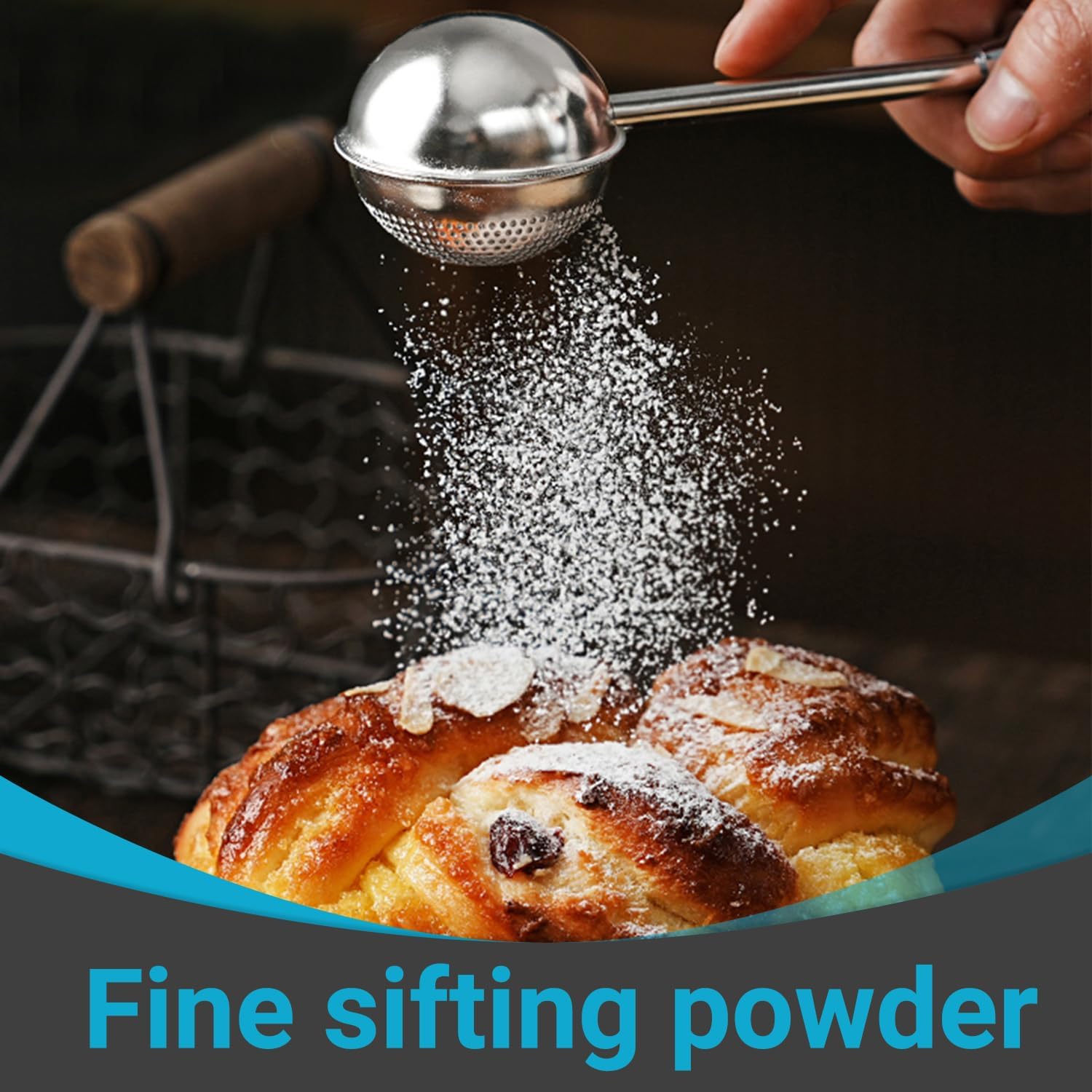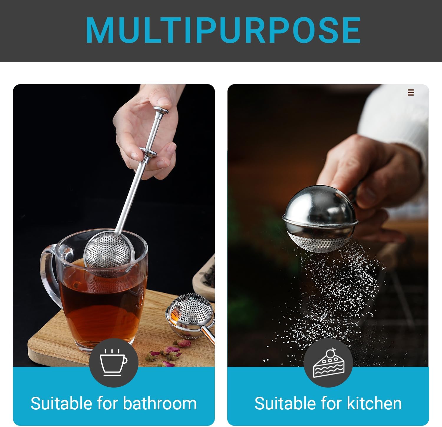 Stainless Steel 2-Pack Tea Infuser & Flour Duster for Bread Baking Set – Full-Open Loose Leaf Tea Steeper + Half-Sieve for Loose Tea/Flour/Spices, Dishwasher Safe