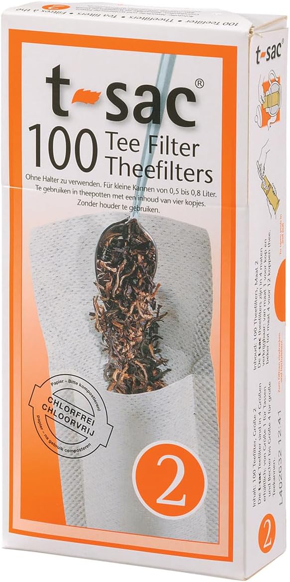 T-Sac’s Tea Filter Bags are single-use, natural paper tea infusers for steeping to brew high-quality loose leaf tea with the convenience of tea bags. Enjoy the fresh, natural taste of loose leaf tea without the hassle and mess of conventional straining methods. Control the amount of tea used for a more robust and flavorful cup of tea. Easily blend teas for customized brews. T-Sac Tea Filter Bags are made with fine paper fibers that allow tea to brew quickly while keeping sediment and smaller tea leaves of the finer grade teas from escaping into the brew. The top flap folds over to secure contents inside. The expandable, gusseted bottom allows ample room for tea leaves to fully expand and T-Sac to sit securely without the need for a filter stand. Easy to Use. Simply open the T-Sac, measure in the desired amount of loose leaf tea and fold the top flap over. Place into a teacup for mug and pour in just-boiled water. Steep tea no less than 3 minutes to release its essential oils and maximum the brewed infusion with aroma and flavor. Once tea is steeped to desired strength, discard the T-Sac. Great for steeping all types of tea, including black tea, oolong tea, green tea, chai, chamomile and other herbal tea. Or use for mulling spices for cooking and baking, or make hot apple cider, spiced wine, and other drink recipes with mulled spices. Just fill with aromatic spices instead of loose tea. T-Sac Tea Filter Bags are user friendly and disposable for convenience and easy cleanup. Made in Germany from all-natural, unbleached paper with no chemicals or artificial ingredients to taint the flavor of the tea. Environmentally sensitive, completely biodegradable and fully compostable. Available in 4 convenient sizes to brew tea, from single servings to large teapots.