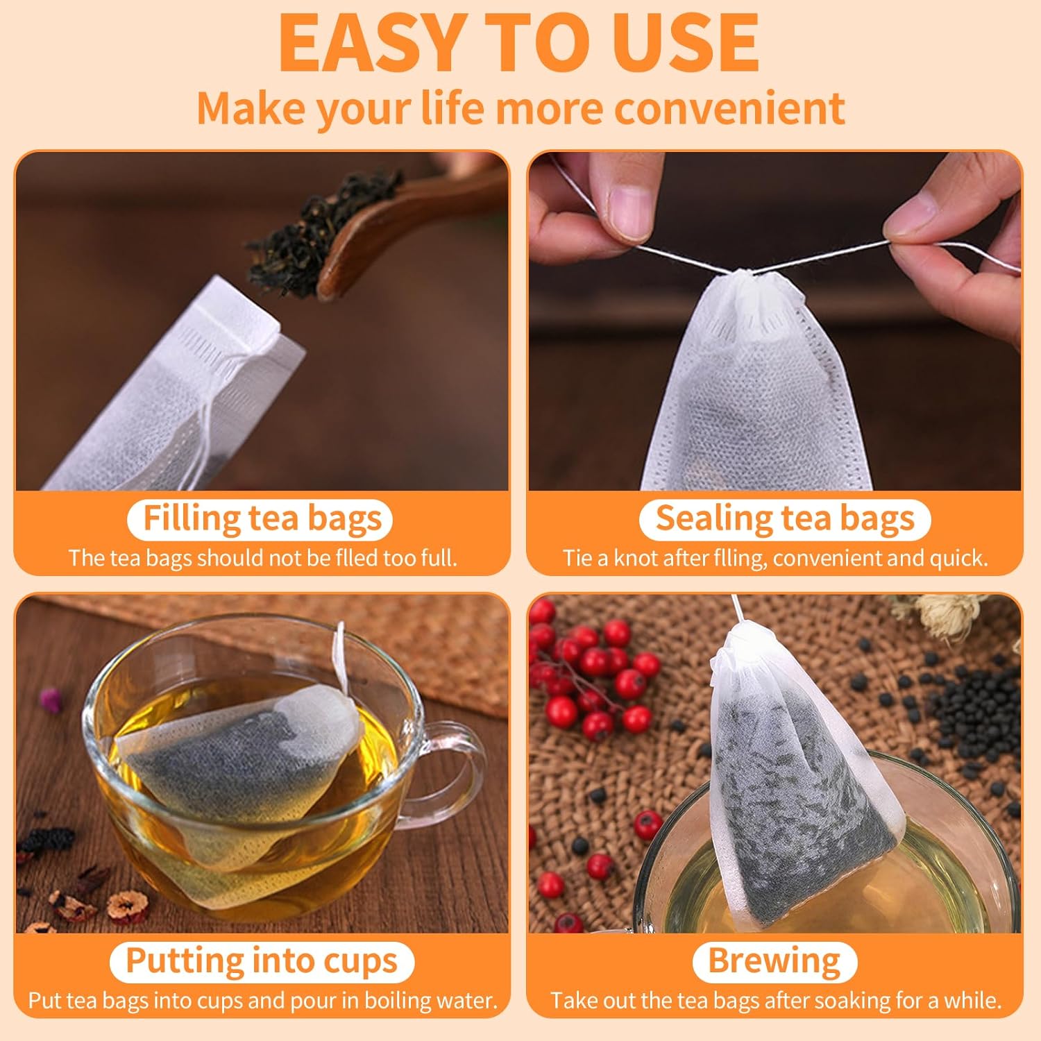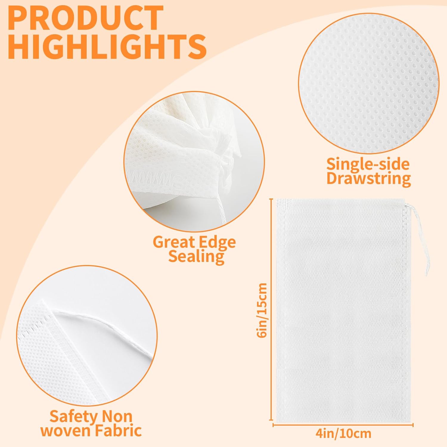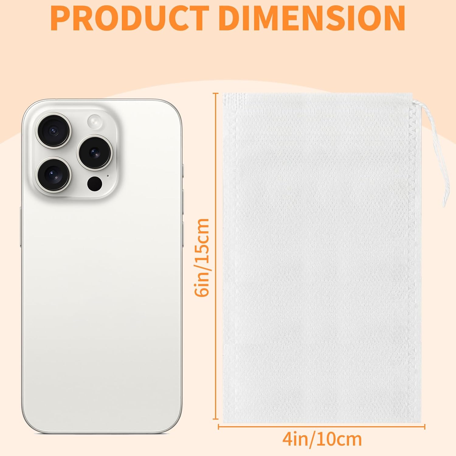 TamBee 100 Pack Disposable Tea Filter Bags Tea infusers 4″ x 6″ Empty Muslin Drawstring Seal Filter Tea Bags Drawstring Herb Loose Tea bag for Brew Tea Cold Brew Coffee(4″ x 6″ /10 x 15cm)