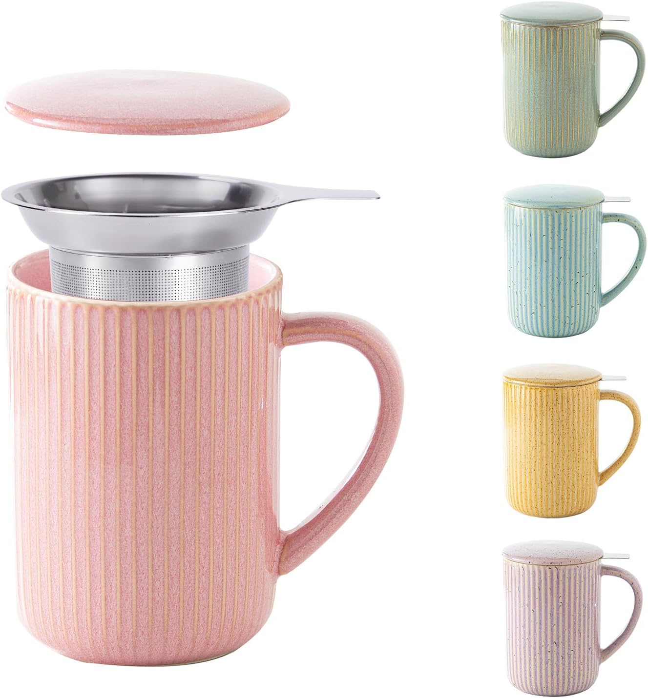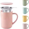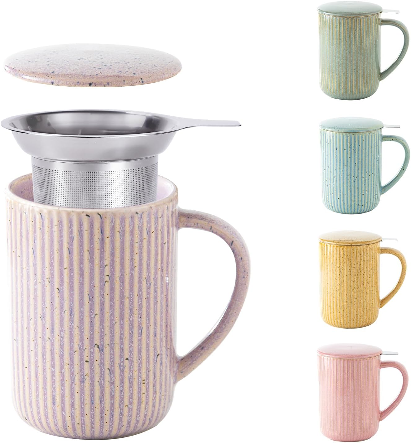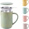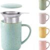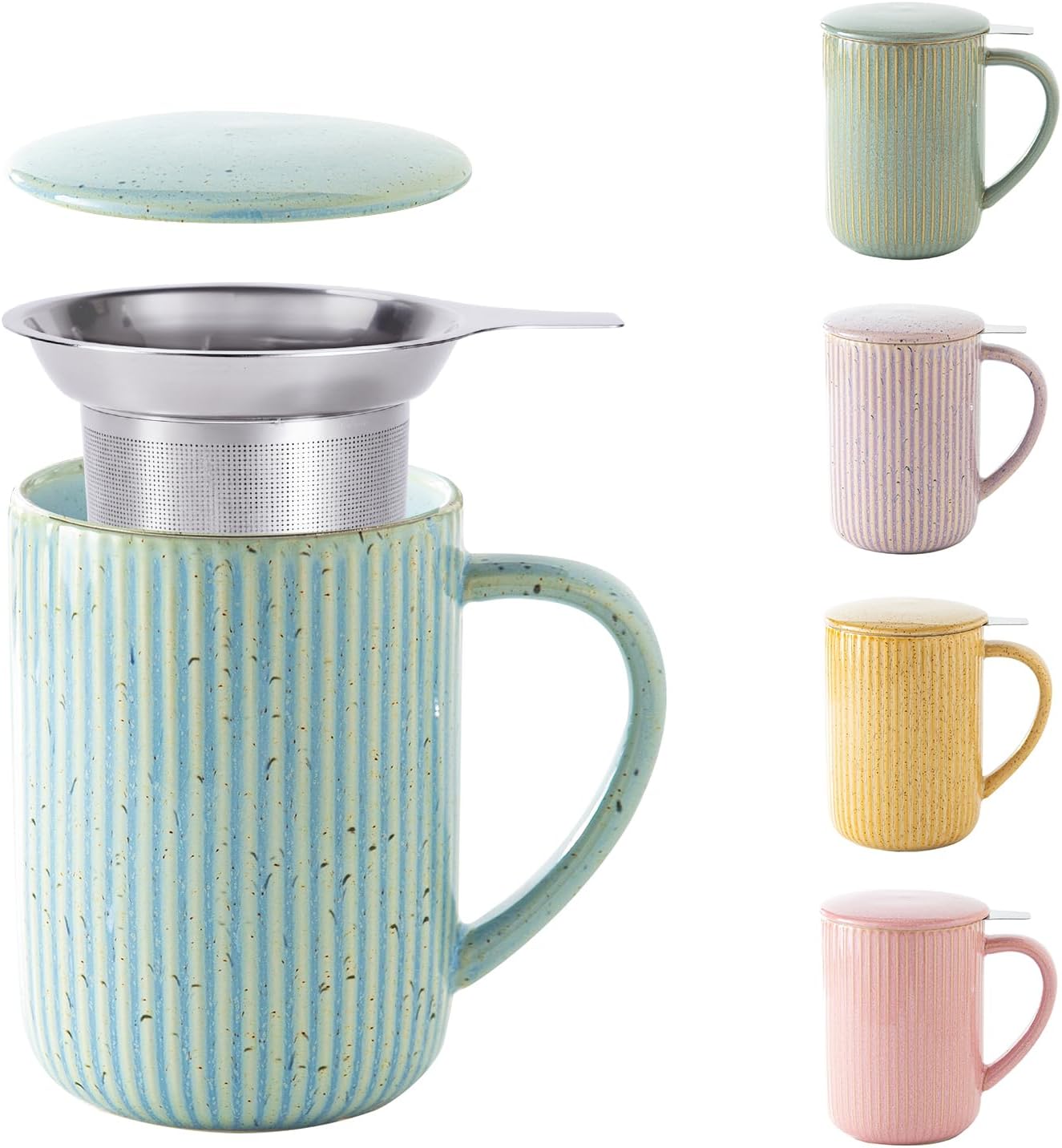 Yundu 15.5oz/470ml Flambe Green Ceramics Teacups with Infuser and Lid, Loose Leaf Tea Cup