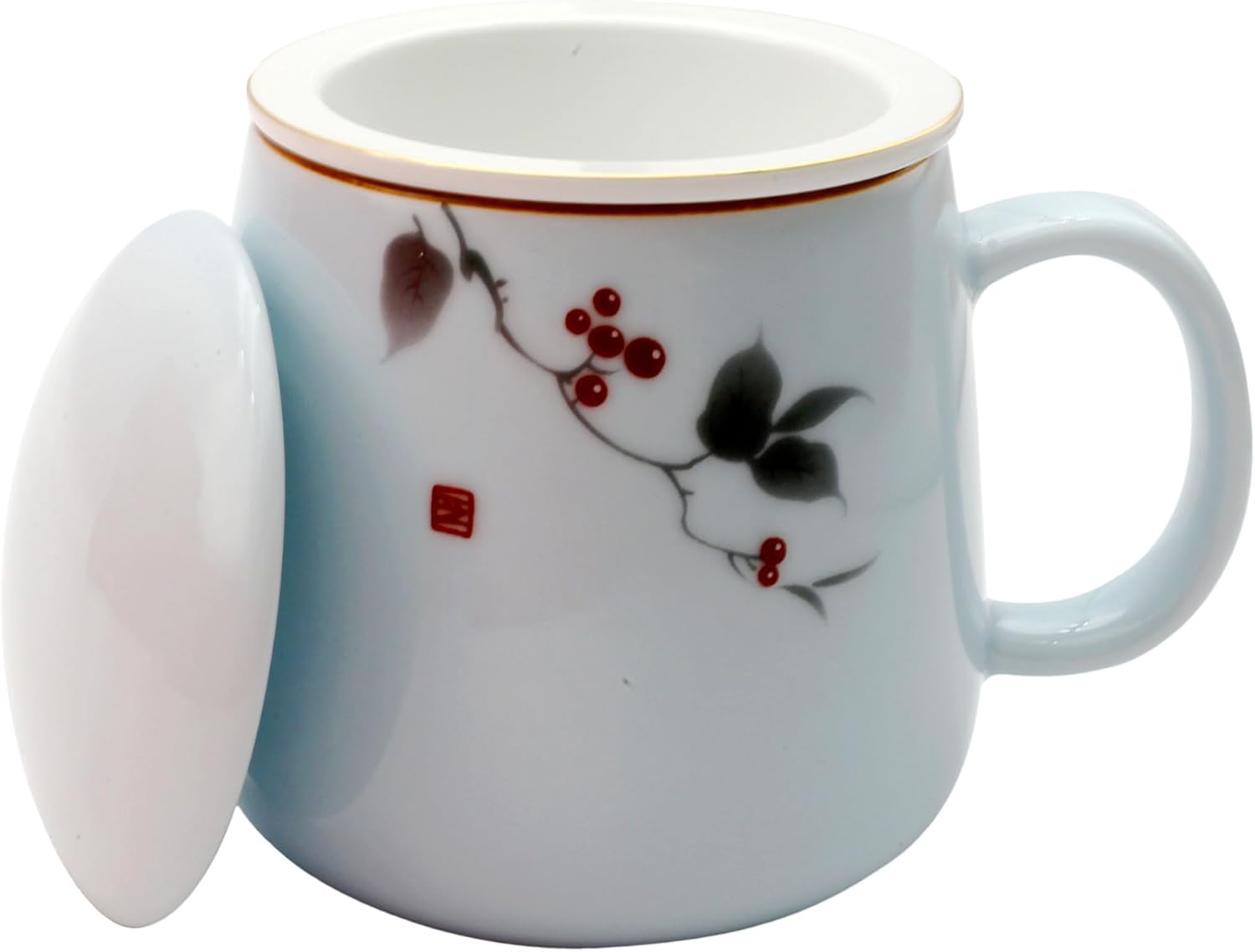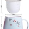 – The matching lid keeps your beverage warm and doubles as a coaster for the infuser. Crafted from durable, lead-free porcelain with a smooth glaze finish, this tea mug is an elegant addition to your daily tea rituals, whether you’re enjoying a relaxing moment at home or need a trusted companion at the office.